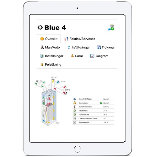 Med din personliga användarbehörighet får du möjlighet att avläsa och ändra grundinställningar på samma sätt som i handpanelen.